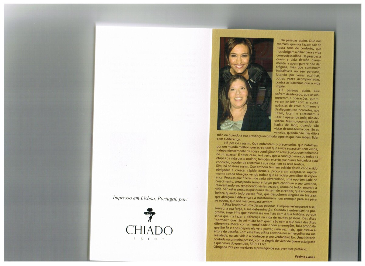 Livro de auto ajuda e autobiográfico com o prefácio escrito pela apresentadora Fátima Lopes.